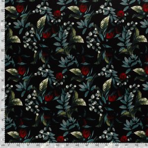 Satijn – bloemen print – zwart