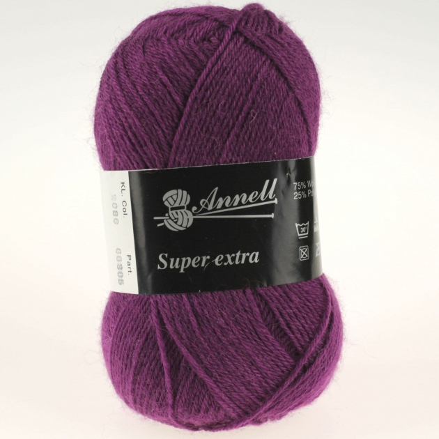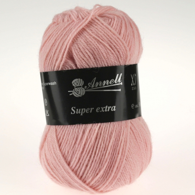 Annell Super extra is een fijne sterke wol die voornamelijk geschikt is voor het breien van sokken. MEt 2 bollen brei je al een paar sokken. Vanwege de sterkheid, isolatiefactor en gemakkelijk onderhoud ook uitermate geschikt voor het breien van truien.