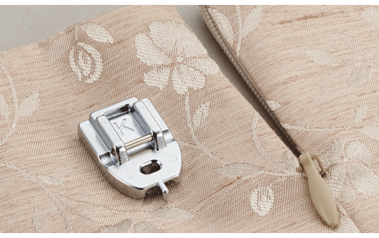 Voor het gemakkelijk plaatsen van blinde ritsen. Het is niet meer nodig om de rits open te vouwen en plat te strijken! Duw simpelweg de ritstandjes omhoog en plaats de groef van de voet op de randen.