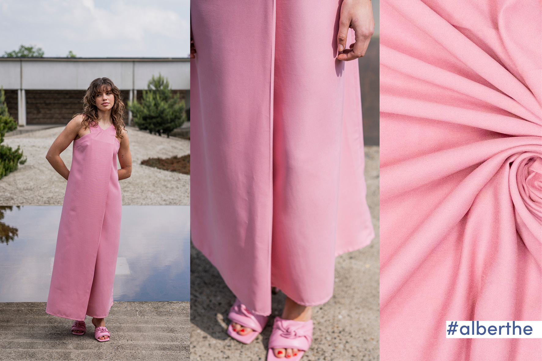 Deze soepele viscose polyester stof wordt gebruikt voor Fibre Mood model Alberthe en is duurzaam gemaakt volgens de OEKO-TEX Standard 100.