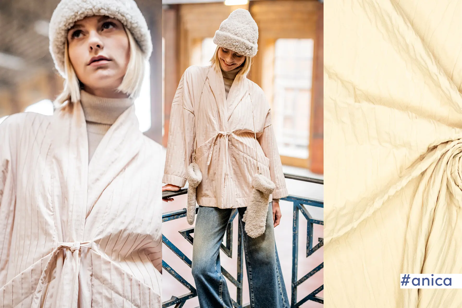 Deze geweven polyester katoen met 3D strepen wordt gebruikt voor Fibre Mood model Anica en is duurzaam gemaakt volgens de OEKO-TEX Standard 100.