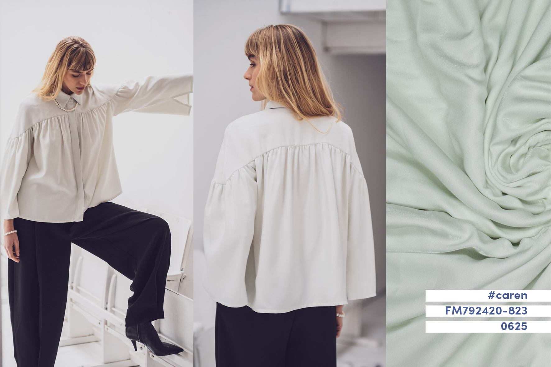 Deze geweven viscose polyester shiney wordt gebruikt voor Fibre Mood model Caren en is duurzaam gemaakt volgens de OEKO-TEX Standard 100.