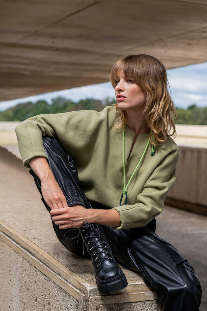 Deze zware joggingstof wordt verwerkt in Fibre Mood nummers 16-17-21- Special 1 / patroon Elaine
