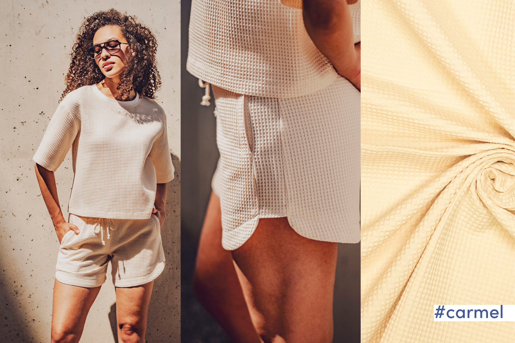 Deze wafelstof wordt gebruikt voor Fibre Mood modellen Elif en Carmel en is duurzaam gemaakt volgens de OEKO-TEX Standard 100.