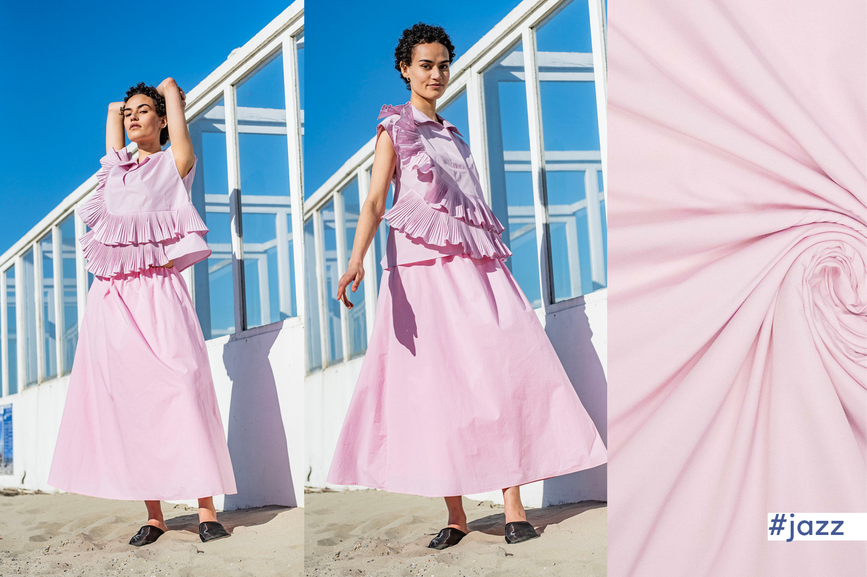Deze stone washed poplin katoen wordt gebruikt voor Fibre Mood model Jazz en is duurzaam gemaakt volgens de OEKO-TEX Standard 100.