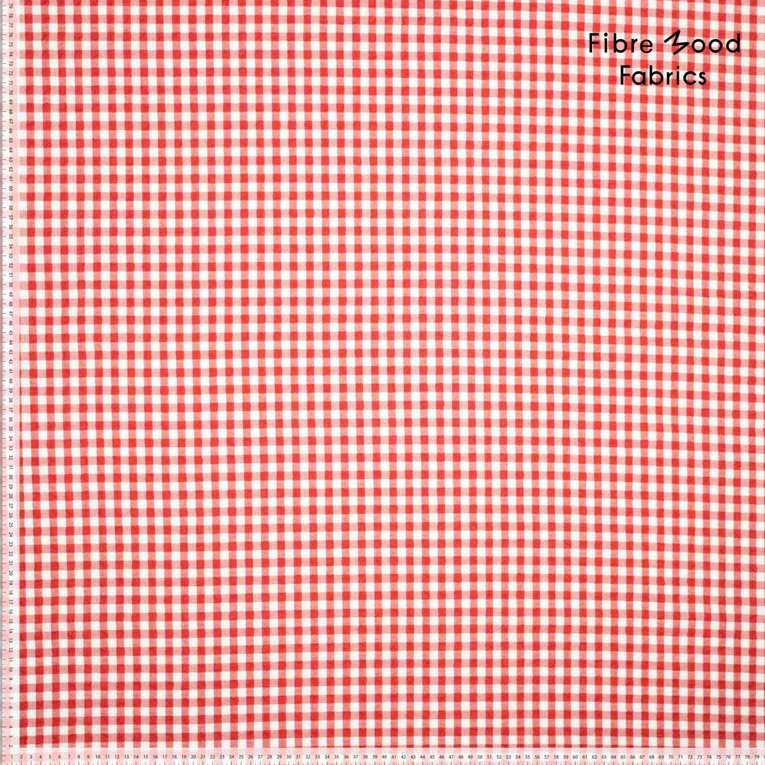 Deze seersucker geruite stof wordt gebruikt voor Fibre Mood model Muriel en is duurzaam gemaakt volgens de OEKO-TEX Standard 100.