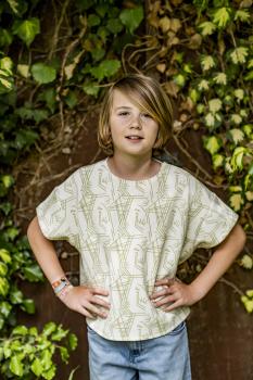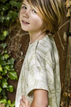 Deze interlock stof met gezicht en lijn patroon wordt verwerkt in Fibre Mood nummer 24 / patroon Rae