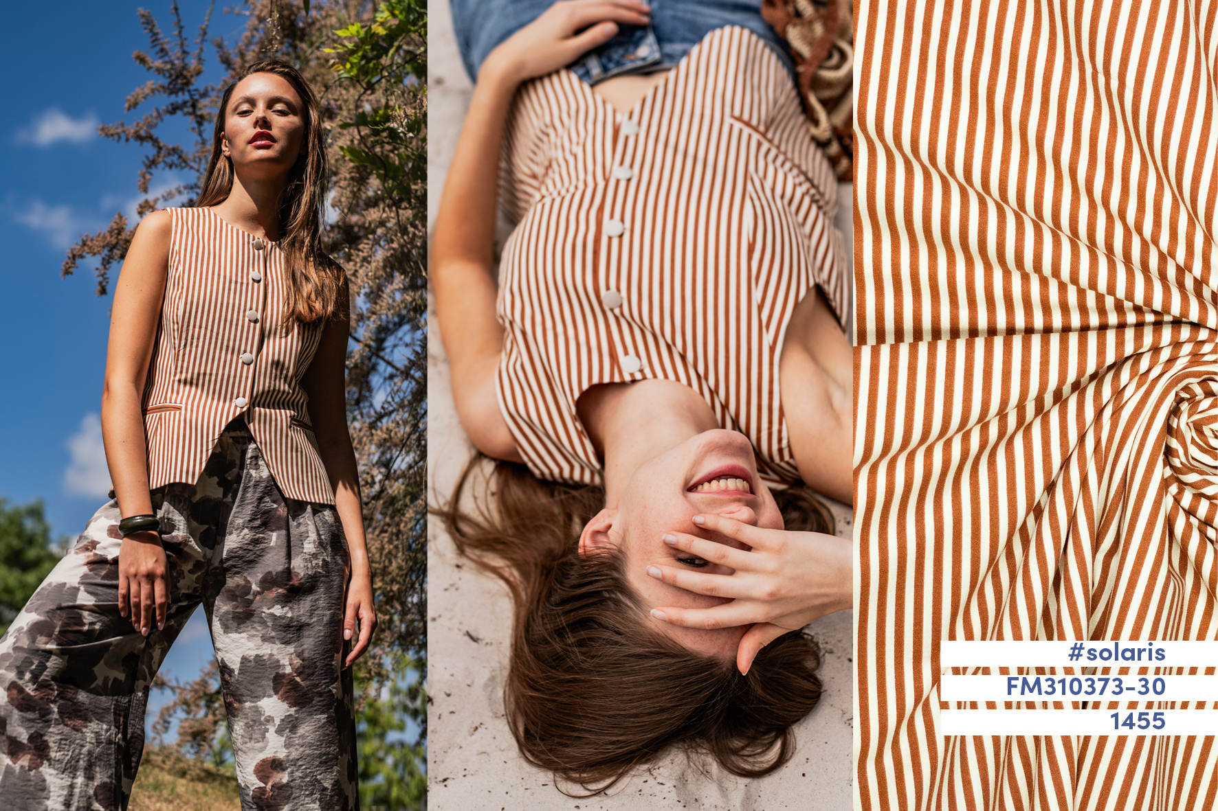 Deze gestreepte katoenen stof wordt gebruikt voor Fibre Mood model Solaris en is duurzaam gemaakt volgens de OEKO-TEX Standard 100.