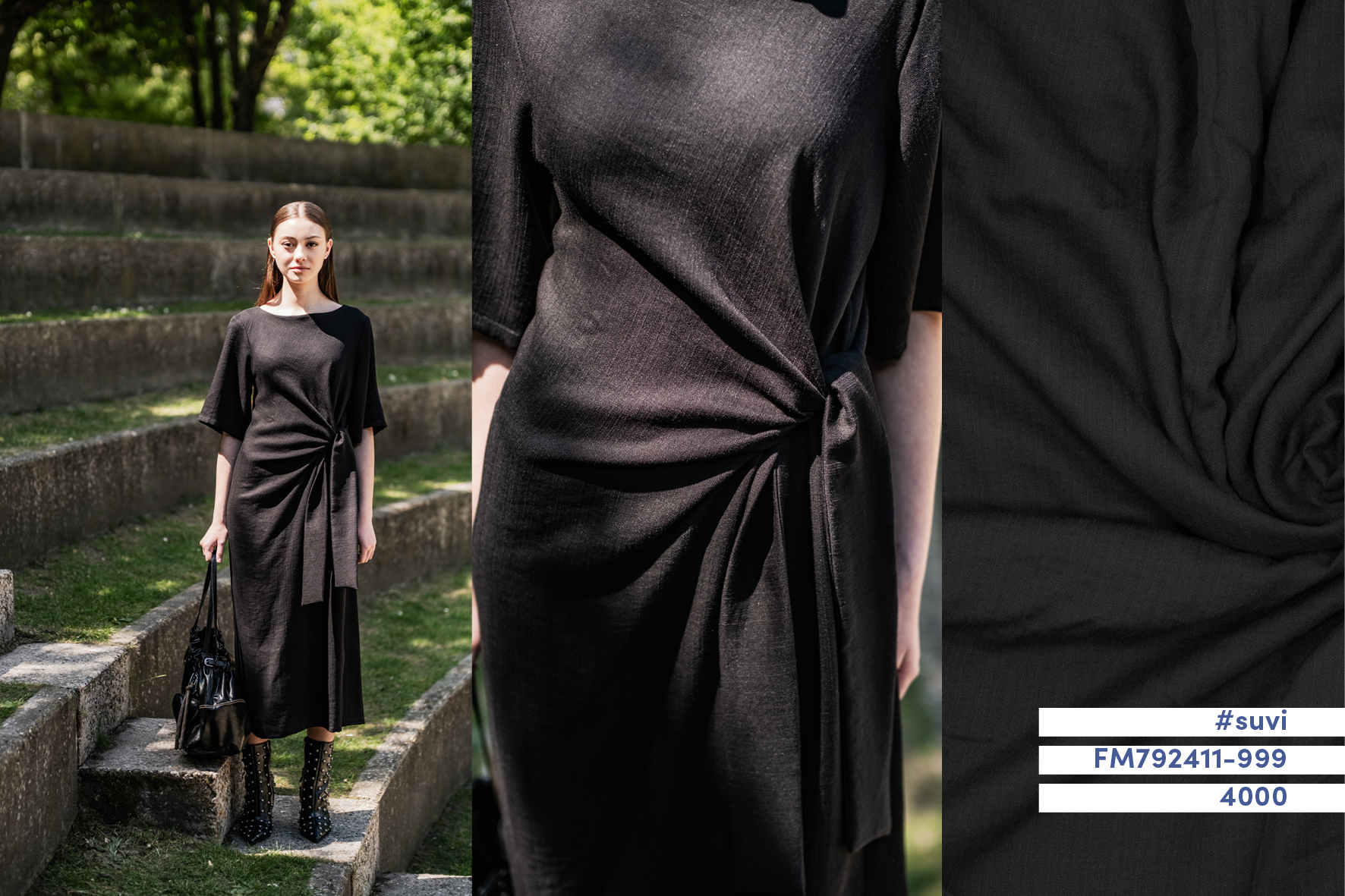 Deze geweven crêpe wordt gebruikt voor Fibre Mood model Suvi en is duurzaam gemaakt volgens de OEKO-TEX Standard 100.
