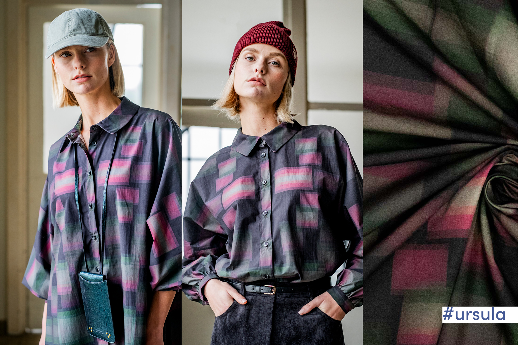 Deze geweven stone washed katoen met digitaal blocks patroon wordt gebruikt voor Fibre Mood model Ursula en is duurzaam gemaakt volgens de OEKO-TEX Standard 100. Geschikt voor jurken, rokken en bloezen.