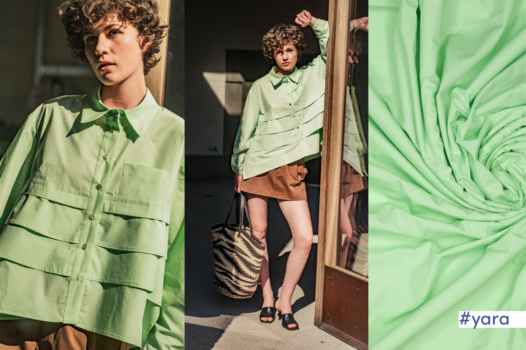 Deze geweven katoen met smooth touch wordt gebruikt voor Fibre Mood model Yara en is duurzaam gemaakt volgens de OEKO-TEX Standard 100.