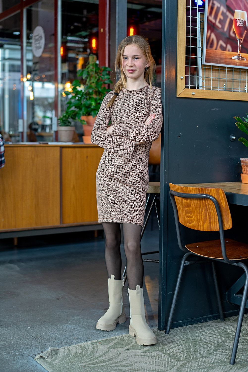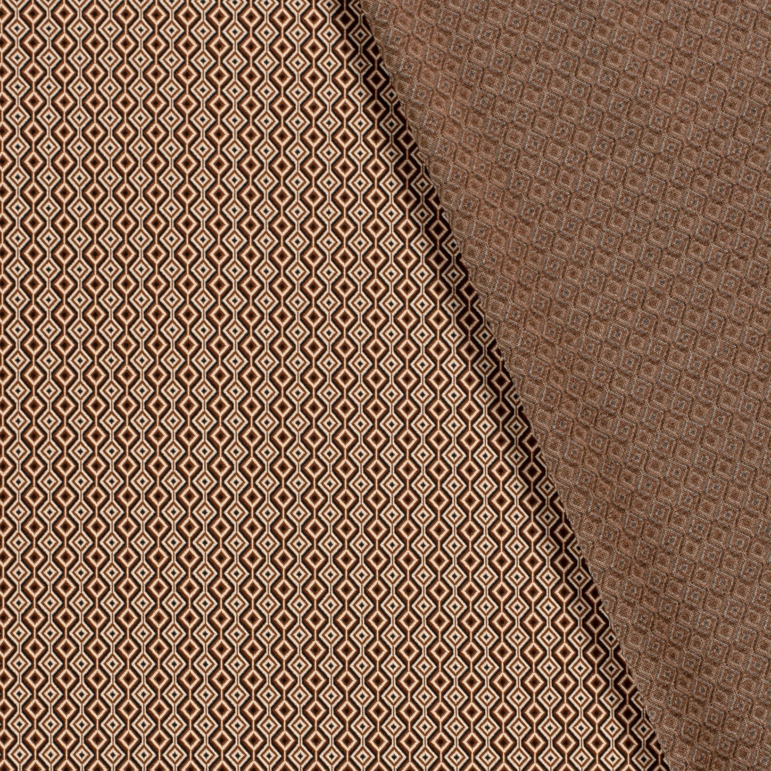 Deze jacquard stof abstract in de kleur brique kan onder andere gebruikt worden voor kleding, blouses, overhemden, rokken, vrijetijdskleding, en meer…