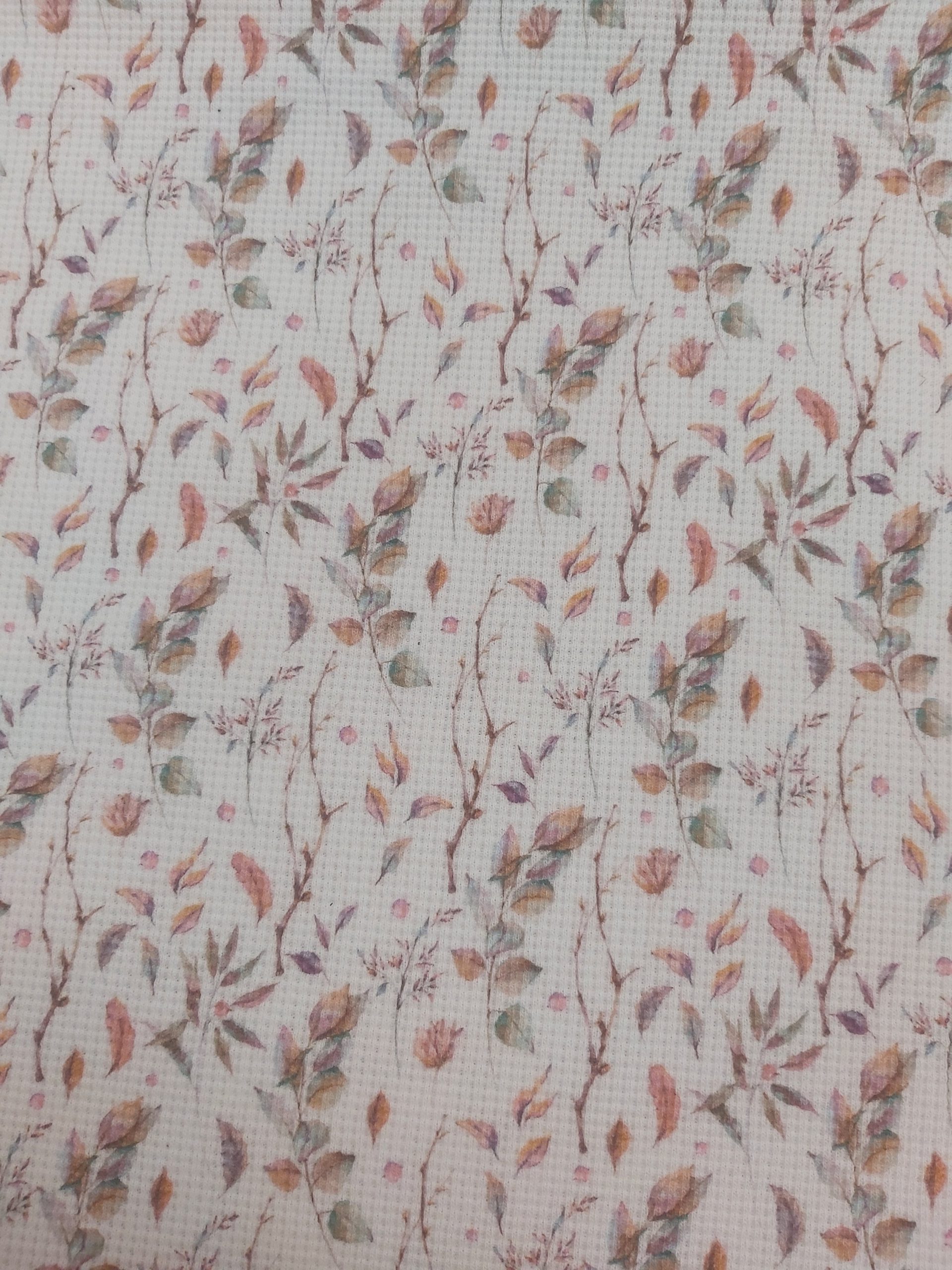 Jersey Wafel – digital toff leaves – wit