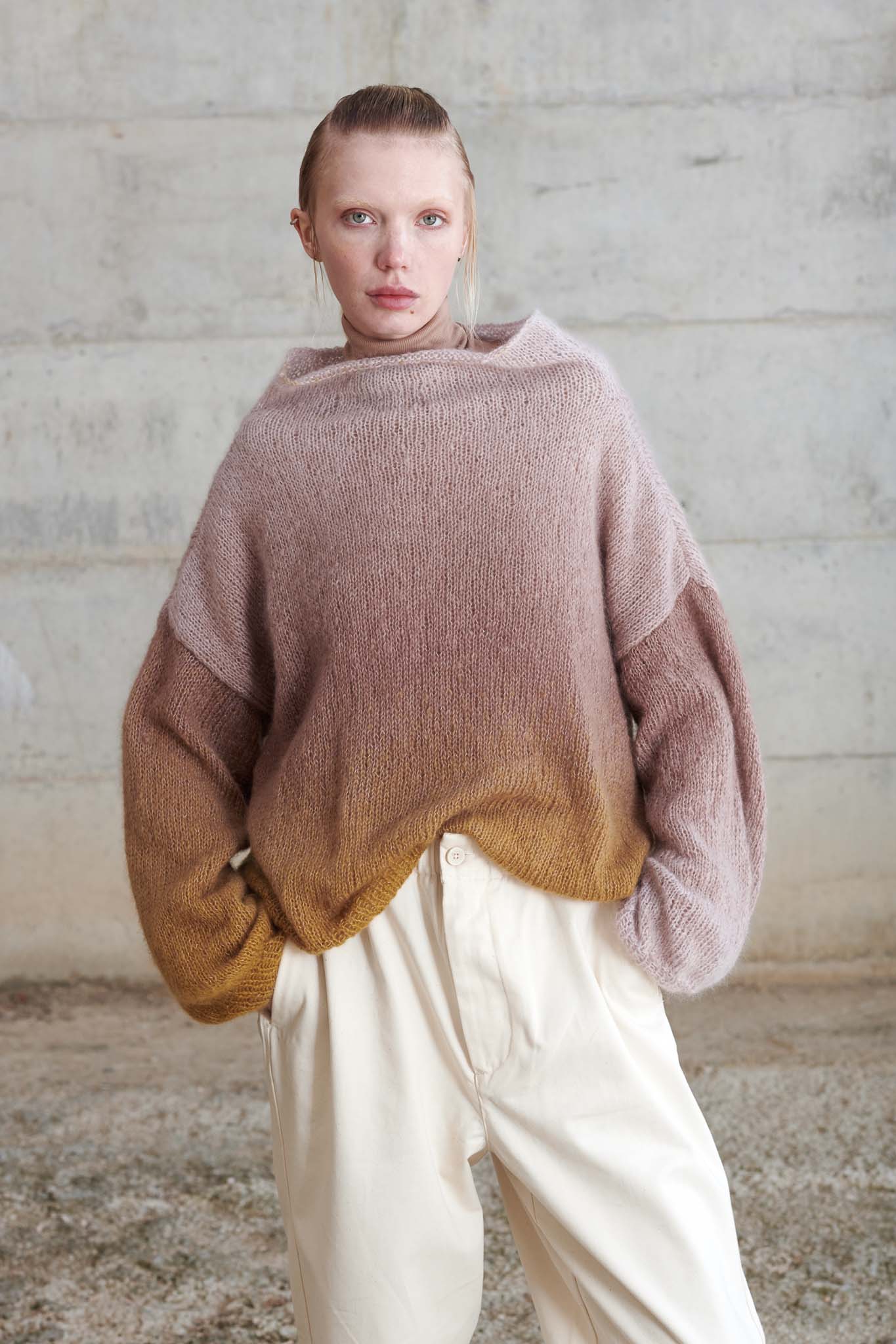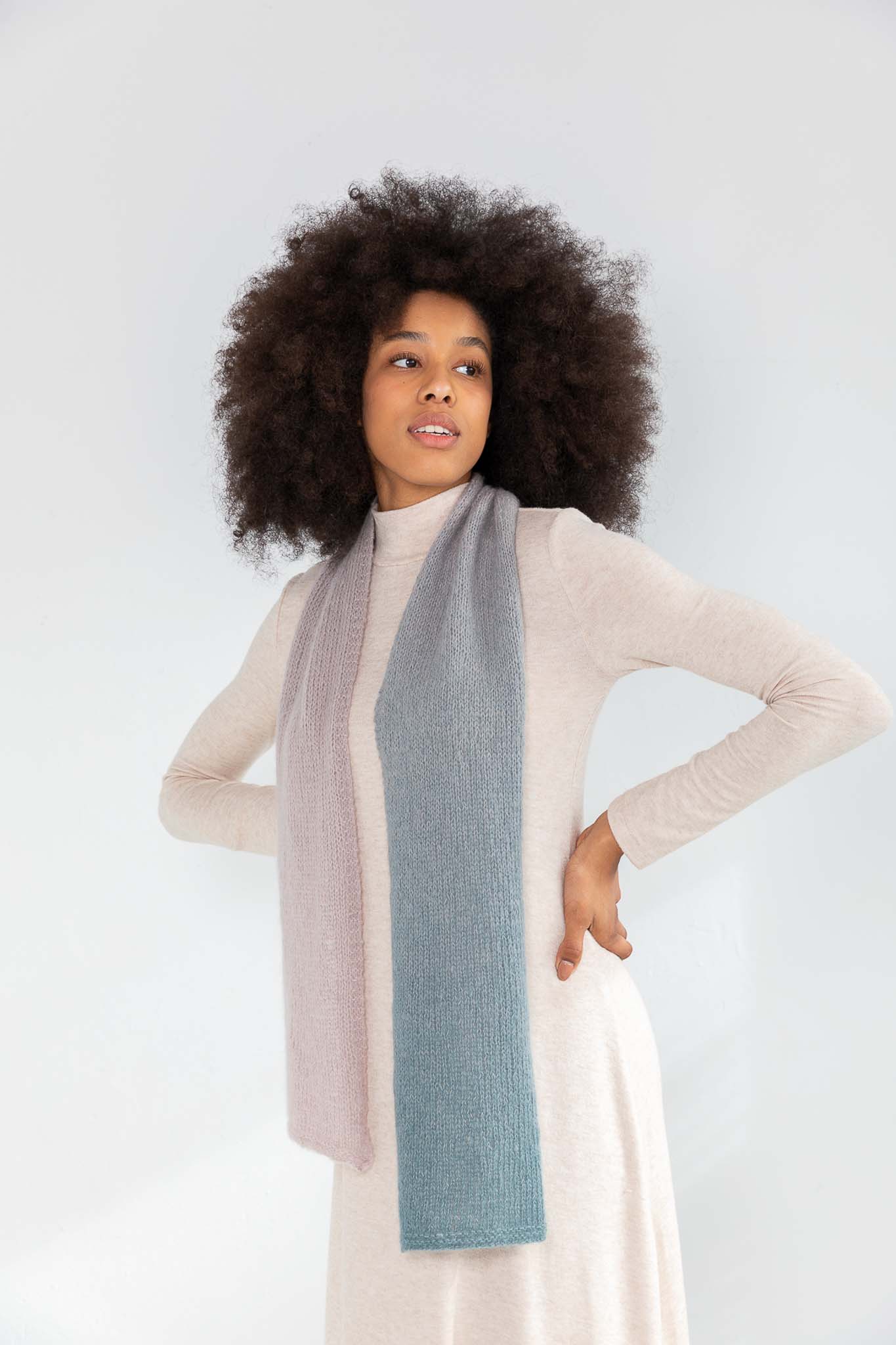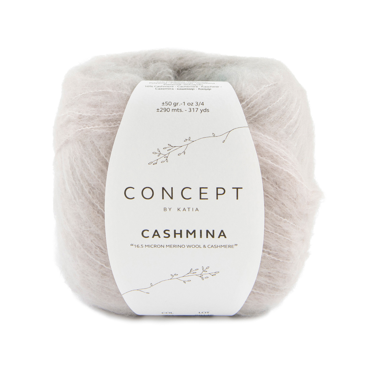 Zacht en licht geruwd garen, bedrukt in 3 kleuren, met kleurverloop in een perfecte cyclus. Naast Cashmere heeft Cashmina in zijn samenstelling Merino Superfine wol van 16,5 micra.