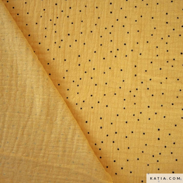 Ontdek de schoonheid van hydrofiel Africa Dots van Katia Fabrics, een 100% katoenen mousseline stof die je per meter kunt kopen. Deze niet-elastische stof biedt een elegante drapering en een licht korrelig gevoel dat zeer comfortabel aanvoelt tegen de huid. Met zijn prachtige stippenpatroon op een delicate gele achtergrond is Muselina Africa Dots perfect voor het maken van verschillende kledingstukken en accessoires. De zachtheid maakt het de ideale keuze voor kleding en naaiprojecten voor de allerkleinsten, zoals shirts, jurkjes en inbakerdoeken. Laat je creativiteit de vrije loop en geef je creaties een schattig tintje met deze prachtige mousseline!