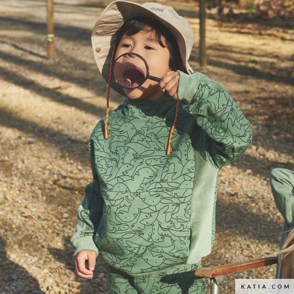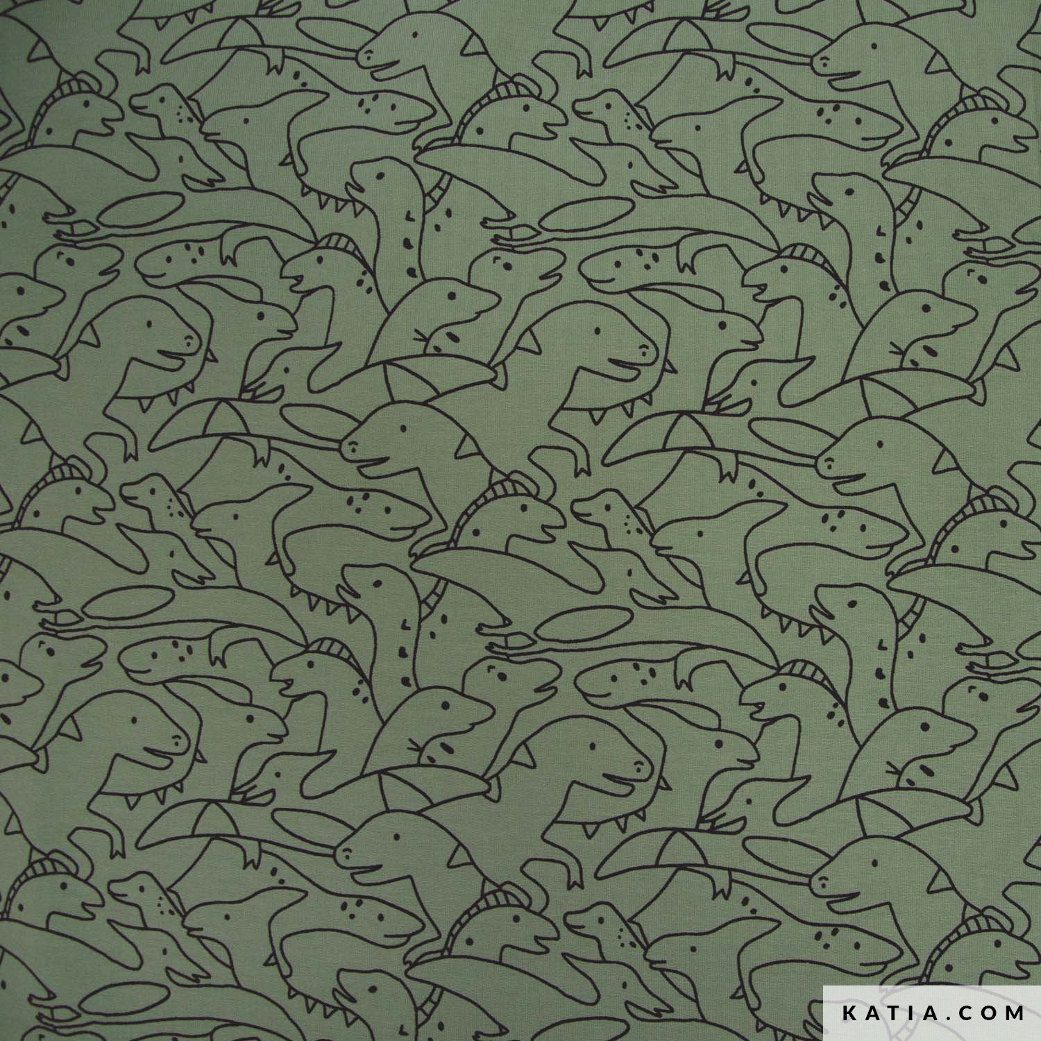 Sweater stof met een geruwde binnenkant dat zeer warm en zacht is. De stof heeft een dinosaurus print op een groene achtergrond. De Sweat Dinos Team sweatshirt stof van Katia Fabrics is een katoenen stof met 5% elastaan voor meer comfort en elasticiteit. Bovendien heeft het, net als de rest van de sweatshirtstoffen van Katia Fabrics, het Oeko-Tex Standard 100 certificaat, wat inhoudt dat het zeer geschikt is voor gevoelige huiden. Het is een ideale sweatstof om comfortabele, zachte en warme kledingstukken voor de winter te naaien, zoals sweatshirts, sportbroeken of -jassen of pyjama’s.