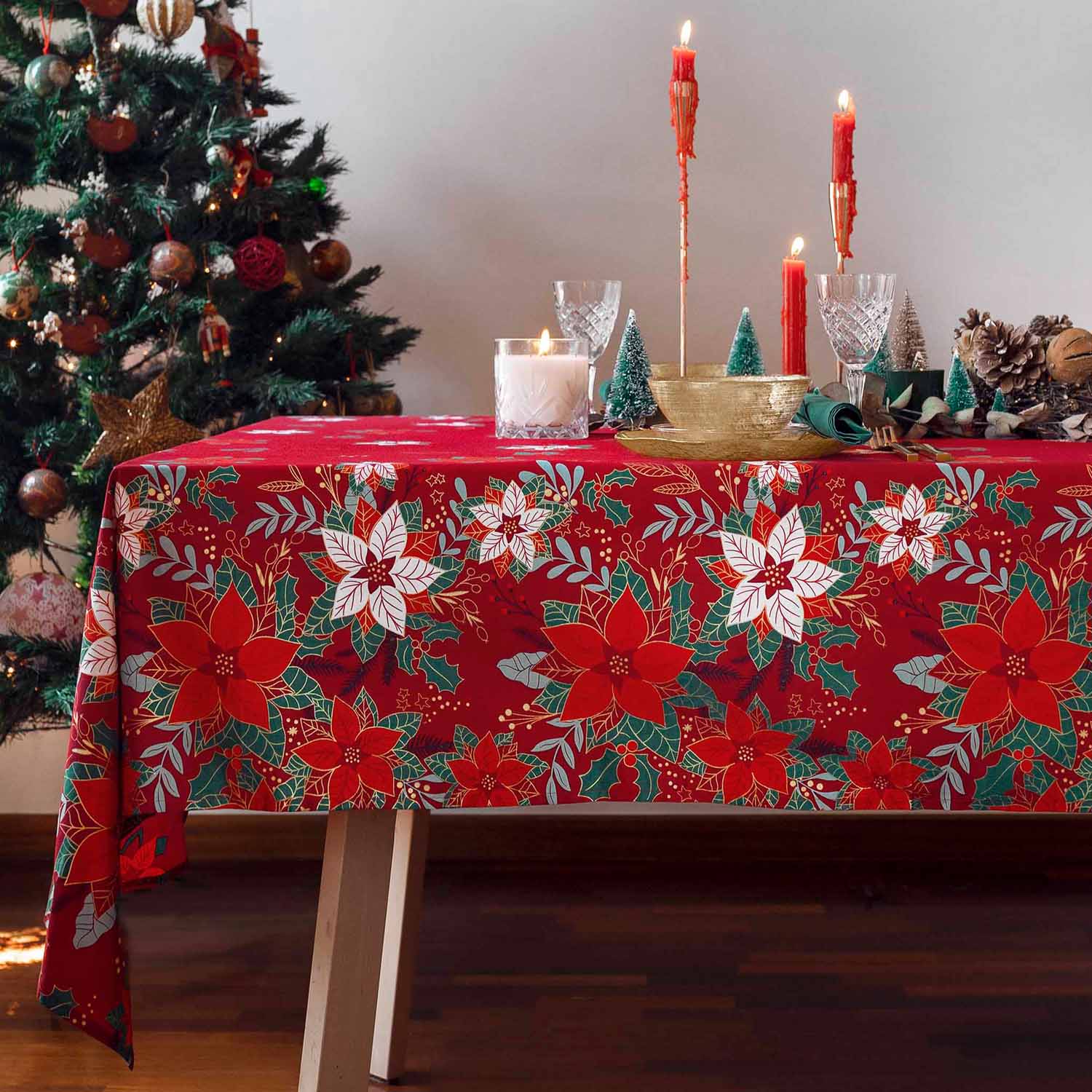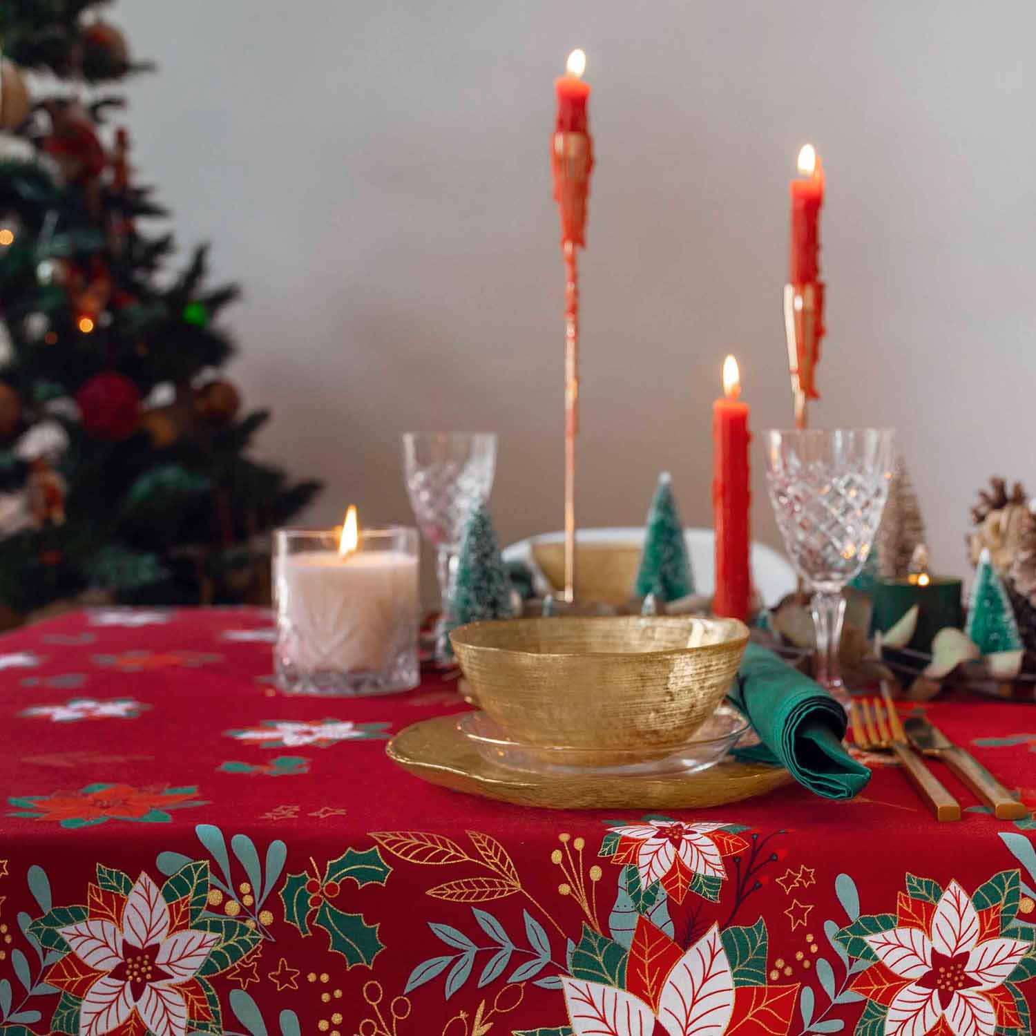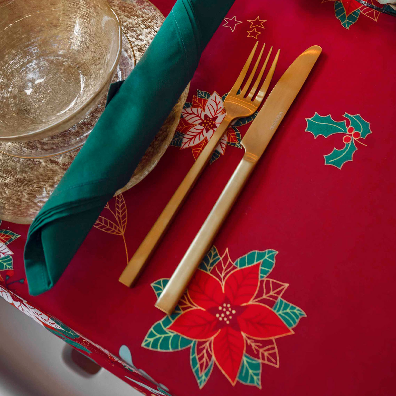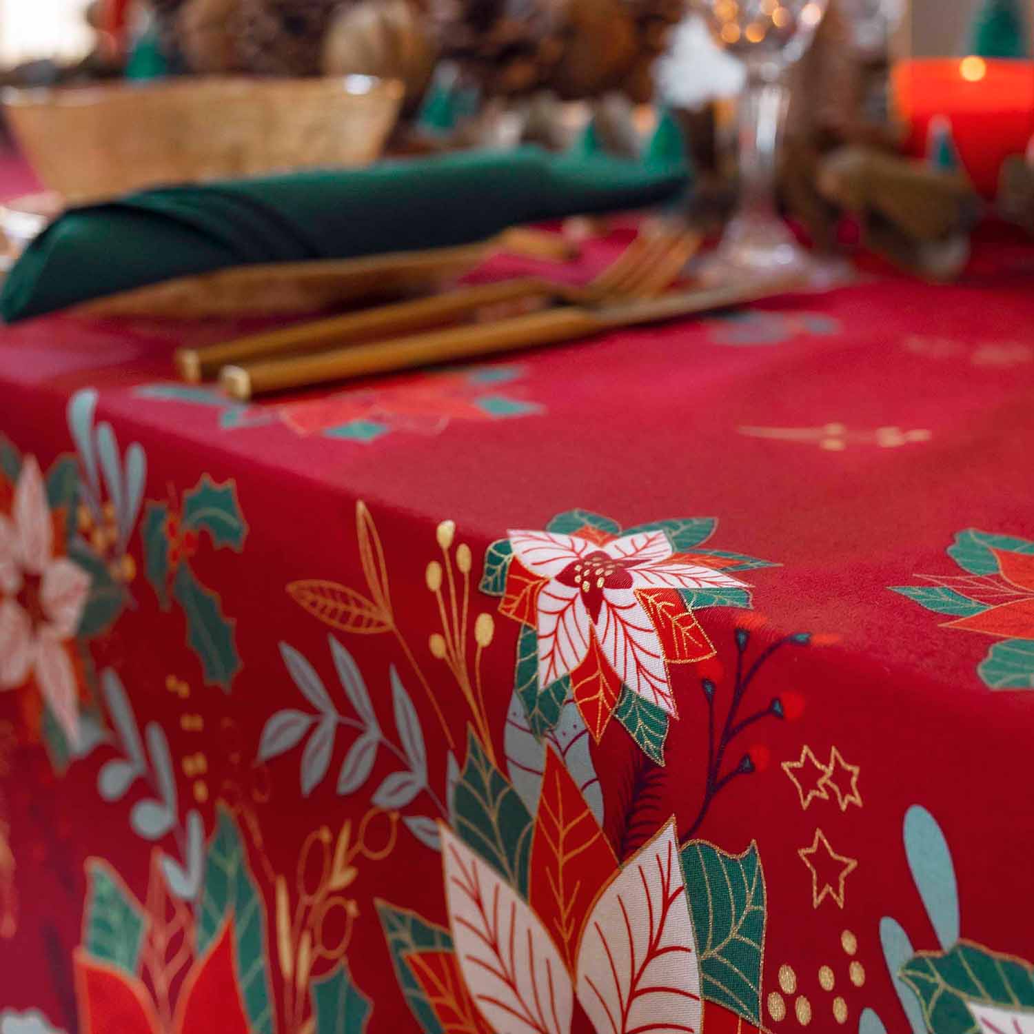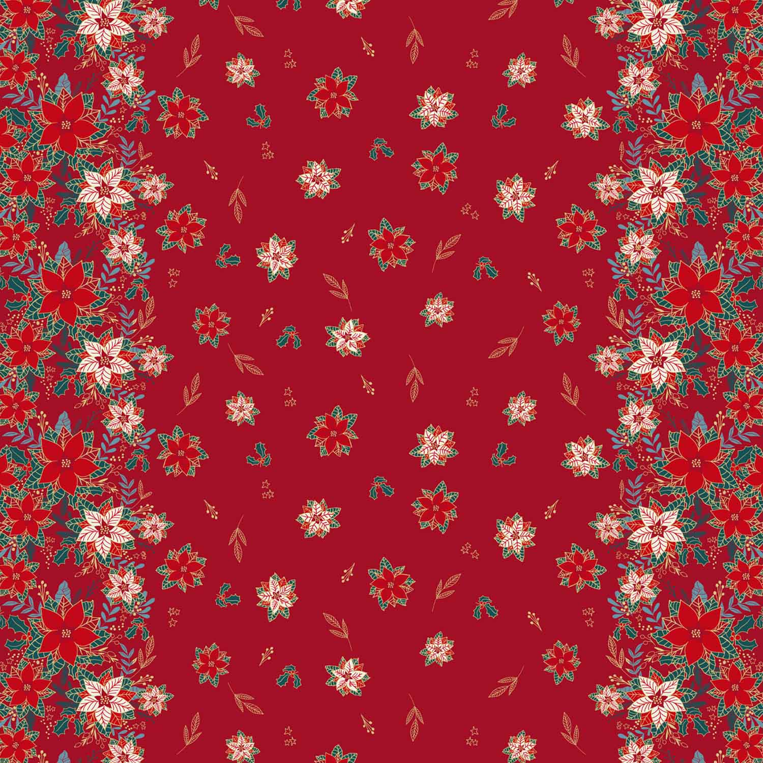 100 % katoenen stof met een originele kerstopdruk in rode, groene en goudkleurige kleurschakeringen op witte ondergrond. Met de Poplin Poinsettia Xmas stof van Katia Fabrics kun je tafelkleden, servethouders en alle soorten kerstversiering maken die je maar kunt bedenken.