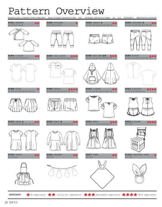 Tijdschrift Poppy editie 12 met naaipatronen voor jongens en meisjes (inclusief patroonbladen om uit te raderen) in de maten 56-176 Met beschrijving in de talen Nederlands, Duits, Engels, Frans, Spaans en Deens