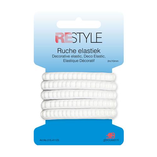 Een licht golvend elastiek geschikt voor vele doeleinden. Restyle Ruche Elastiek is 10mm breed en bevat 2 meter looplengte. Gebruik Restyle Ruche Elastiek ook als rimpel elastiek.