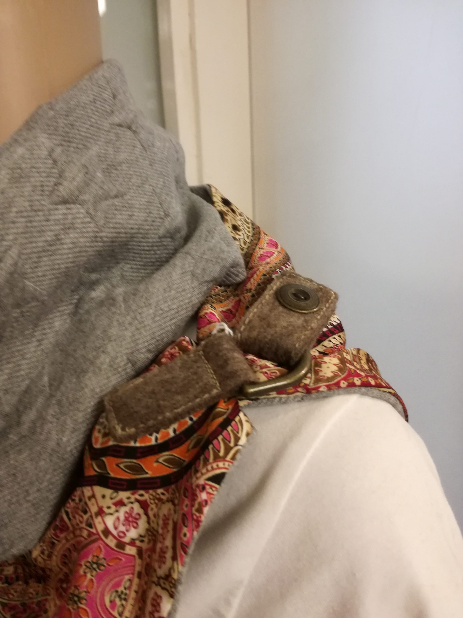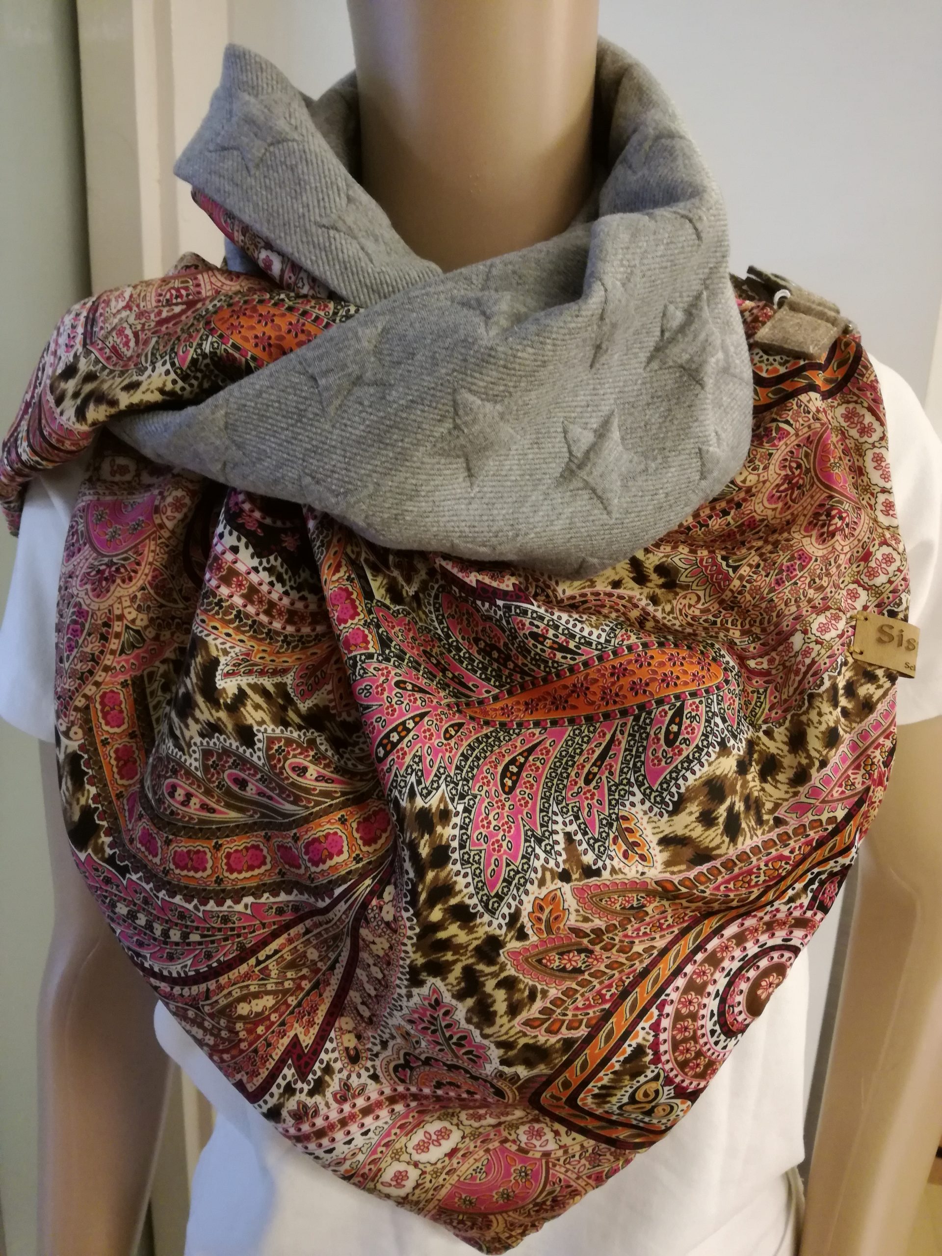 Sjaal van grijze jogging met ster en een 100% polyester satijn in een prachtige print, met sluiting.
