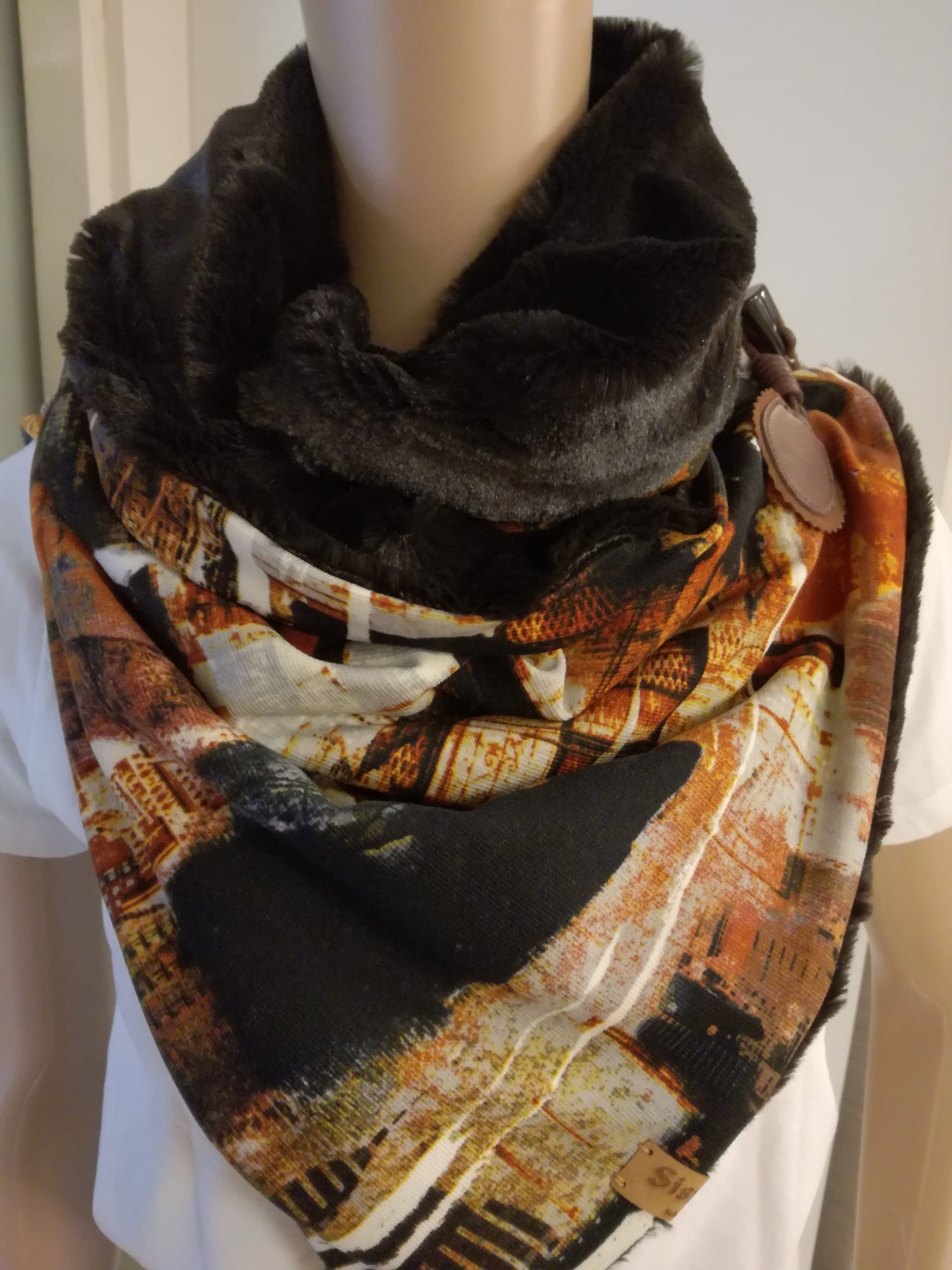 Leuke sjaal van heerlijk zachte imitatiebont met tricot en sluiting.