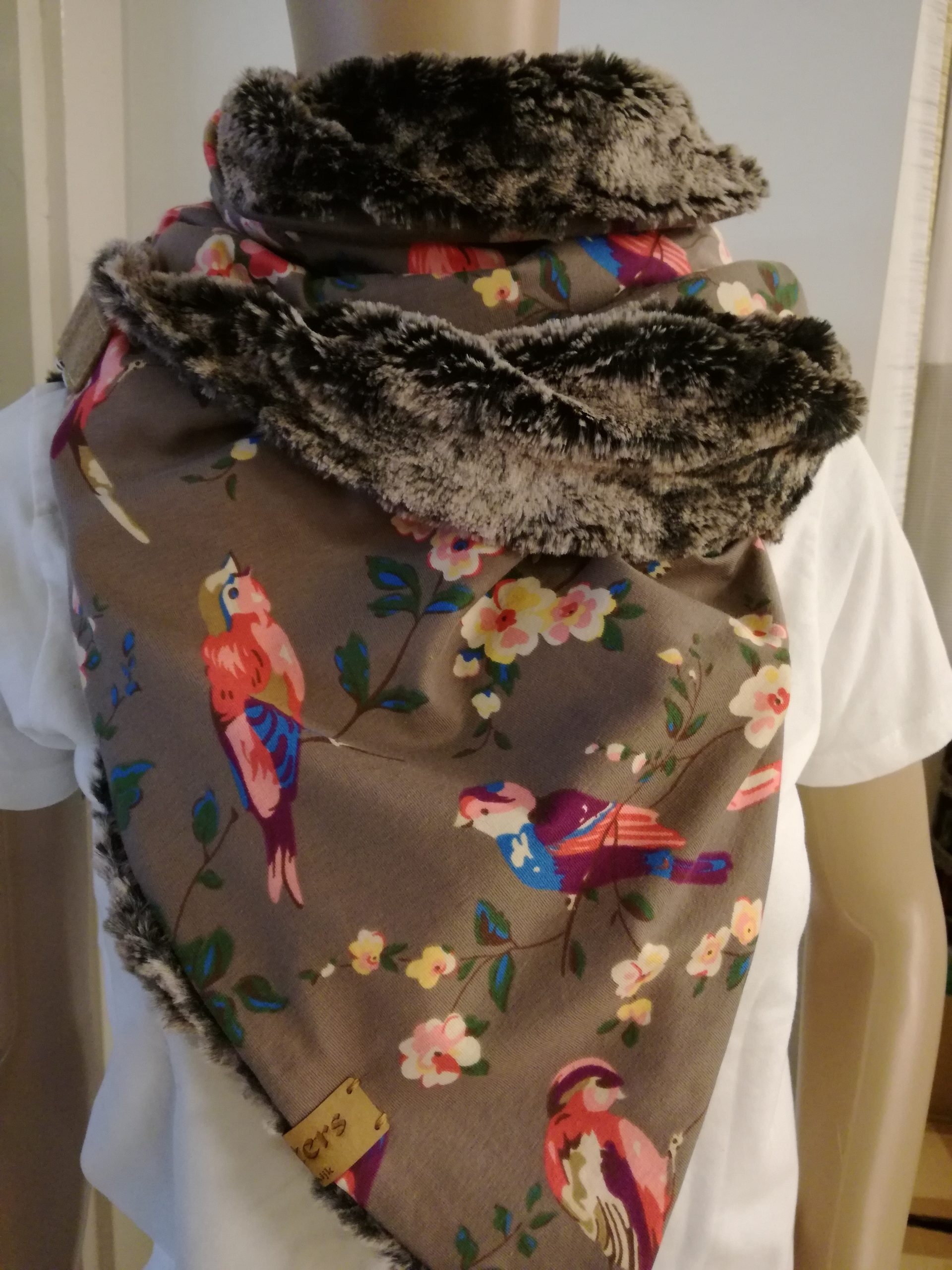 Leuke sjaal van heerlijk zachte imitatiebont met tricot, met sluiting.