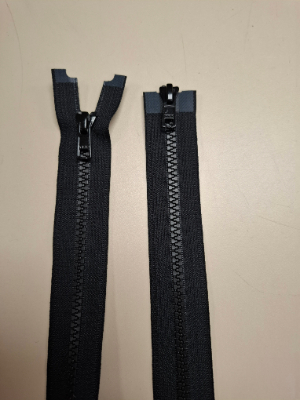 Deze dubbel deelbare rits heeft een bloktandvertanding van 6mm breed.