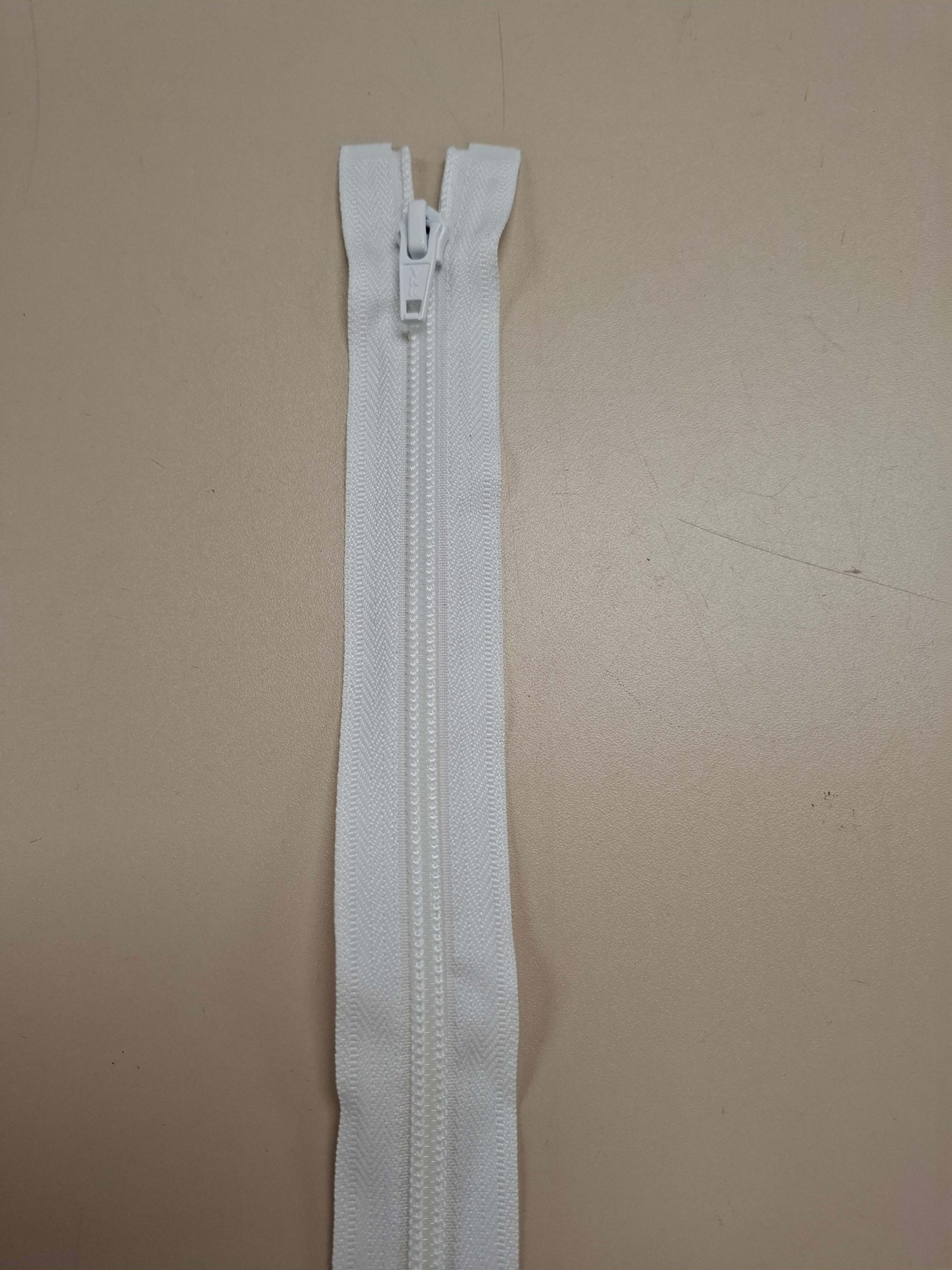 Een nylon rits met een 6 mm brede spiraal vertanding en een rechthoekige ritsentrekker.